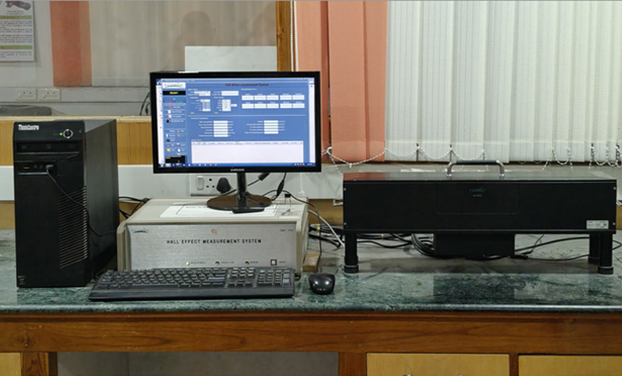 The Hall effect is the production of a voltage in a thin slice of semiconductor material when it is simultaneously exposed to an electrical current and a magnetic flux in perpendicular directions to each other. Hall Effect Measurements is typically employed to study the electrical behaviour of semiconducting materials especially thin films. The electrical parameters such as carrier concentration, mobility and resistivity/conductivity can be derived from this instrument.
