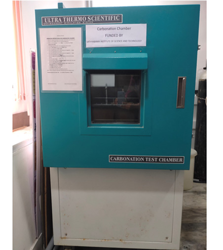 The UT/HTC 220- CO2 carbonation test chamber is sophisticated piece of equipment designed for conducting controlled carbonation tests. This chamber is built for reliable and economical carbonation testing, emphasizing high standards and quality. the primary application is for carbonation testing, environmental test chambers with CO2 control can also be used for Concrete and Material Testing, Corrosion Studies, Climate Simulation, Plant Growth Studies.