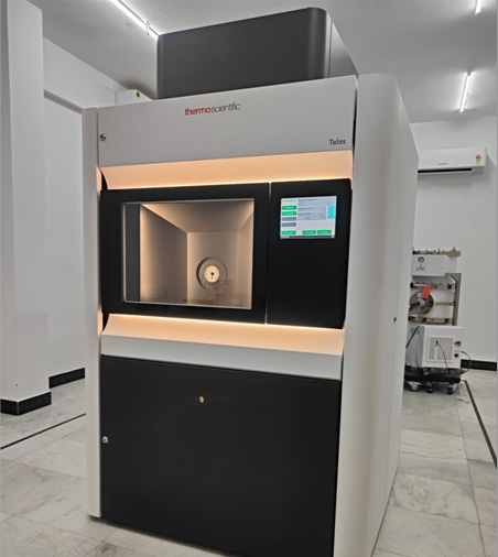 The Thermo Scientific Talos F200S G2 is a scanning transmission electron microscope that combines outstanding high resolution STEM and TEM imaging with energy dispersive X ray spectroscopy (It is provided with a high resolution field emissions gun, VeloX Software for fast and easy acquisition and analysis of multimodal data, rapid, precise EDS analysis of nanoscale details in 2 D and 3 D with high cleanliness, high throughput STEM imaging with simultaneous, multiple signal detection with better contrast for high quality images.